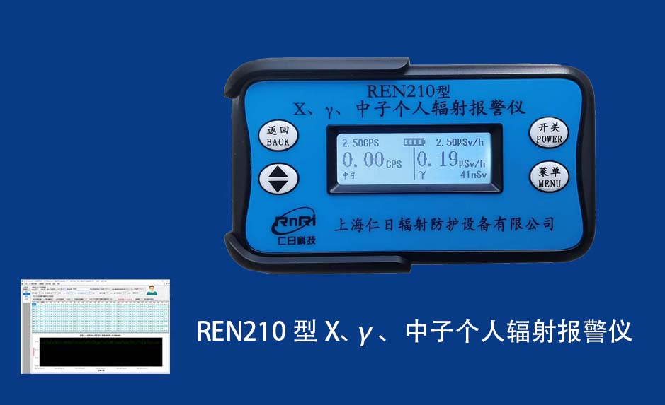 REN210型X、γ、中子個人輻射報警儀內(nèi)置SiPM和鋰玻璃晶體組成中子探測器儀器,采用反照率方式探測中子射線,同時也能探測X、γ射線。因此它可同事監(jiān)檢測X、γ、中子三種射線。能顯示工作場所的劑量當(dāng)量率和累積劑量,更換電池時,日期及累積數(shù)據(jù)能永久保存。可選配RenRiPersonal個人劑量管理軟件,該軟件可存儲多個人的歷史數(shù)據(jù),能記錄日累積、月累積、年累積、輻照時長、計算平均劑量率、扣除或不扣除本底輻射,且以文字和圖譜的方式展現(xiàn)數(shù)據(jù)。廣泛應(yīng)用于環(huán)保、化工、水泥、煤礦、土木工程、石油、醫(yī)院、疾控、進(jìn)出口商檢、核電、加速器、機(jī)場、中子源庫和其他安檢、邊境控制海關(guān)檢測等